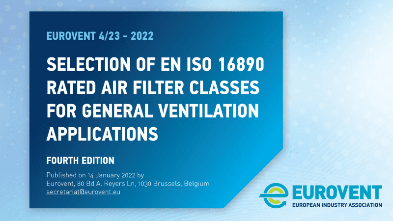 Brussels, 18 January 2022. The Eurovent Product Group ‘Air Filters’ has published an updated version of the Recommendation 4/23 ‘Selection of EN ISO 16890 rated air filter classes for general ventilation applications.’ It aligns with the 2021 WHO global air quality guidelines.