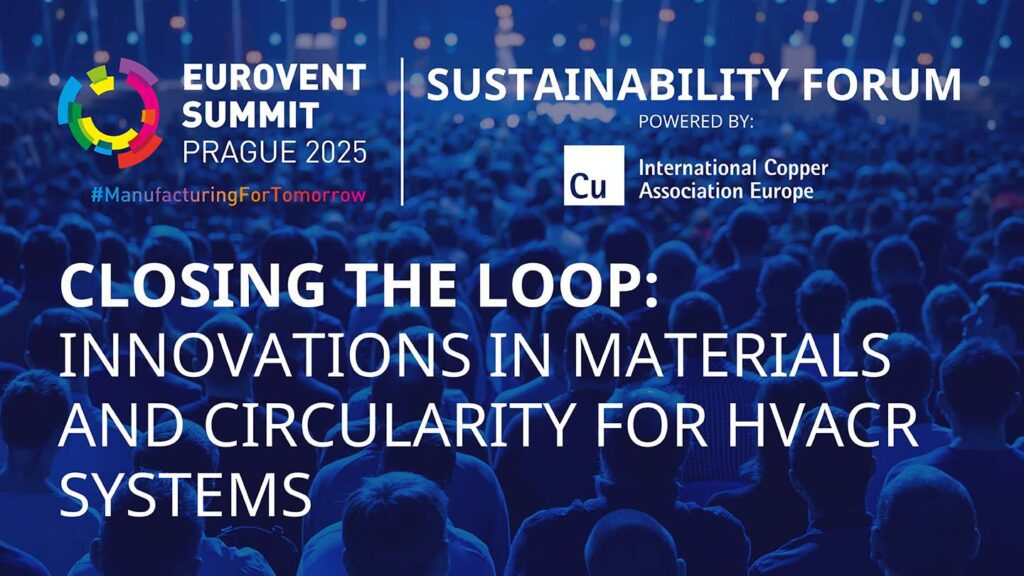 At the EUROVENTSUMMIT, the seminar titled ‘Closing the loop: Innovations in materials and circularity for HVACR systems’ (powered by International Copper Association Europe) invites participants to explore how circular practices can transform the HVACR sector. Taking place under the theme #ManufacturingForTomorrow, this session will focus on material choices, reuse strategies, and design for circularity as key drivers of sustainability. The seminar takes place on Thursday, September 25 2025, from 14:30-17:30h.