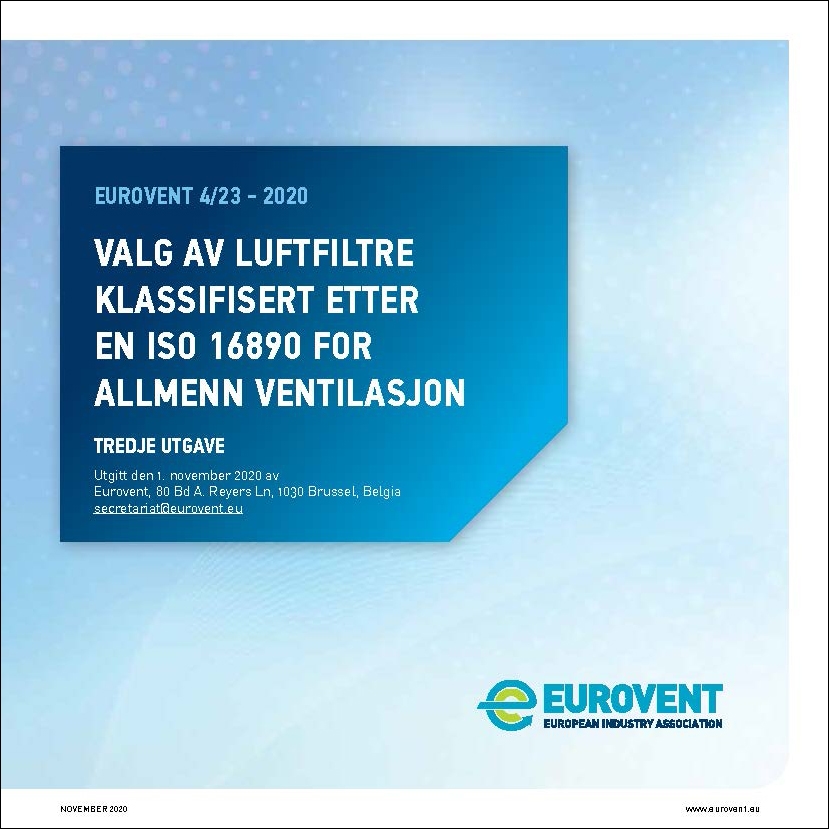 Formålet med denne anbefalingen er å gi retningslinjer for valg av luftfilter klassifisert etter EN ISO 16890, gi en oversikt over forskjellene mellom klassifisering etter EN 779 and EN ISO 16890 og øke bevisstheten om energieffektiviteten ved luftfiltre. If you are interested in the print version of this document, contact the Eurovent Secretariat (secretariat@eurovent.eu).