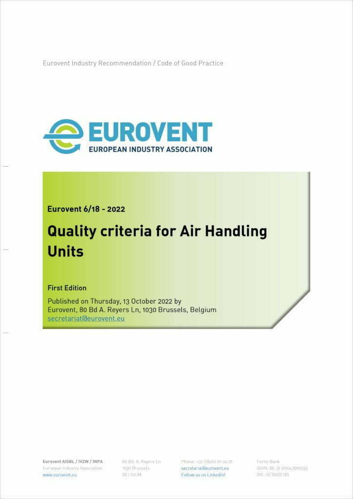The purpose of this recommendation is to provide a comprehensive overview of features that determine highly efficient operation and correct service of air handling units, which in other words are a measure of the AHU quality. The document addresses a wide range of aspects, such as properties of the casing and individual components, energy efficiency and controls requirements, maintainability, and the content of technical documentation. Detailed recommendations based on the expertise and many years of experience of Eurovent members indicate what distinguishes a good air handling unit. The guidelines in this document are intended to help investors, designers and end-users to assess whether the unit meets all practical expectations and requirements.