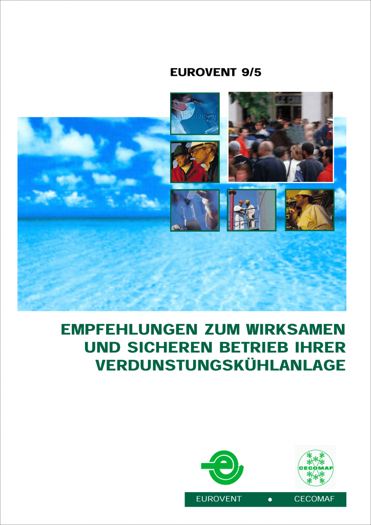 Richtlinien zur Verhinderung unkontrollierten biologischen Wachstums, u.a. Legionellen in Kühltürmen und Verdunstungsverflüssigern. Diese Empfehlungen wurden durch EUROVENT/CECOMAF WG 9 erarbeitet. Die namhaften Hersteller von Verdunstungskühlgeräten sind in der EUROVENT/CECOMAF Arbeitsgruppe 9 „Kühltürme” zusammengefasst. Das Bestreben der Arbeitsgruppe ist, die Wichtigkeit wirksamer und sicherer Rückkühlanlagen im Hinblick auf die heutigen Umwelterfordernisse herauszustellen. Im Hinblick auf dieses Ziel verdient die Verdunstungskühlung besonderer Beachtung, es mögen jedoch hie und da Bedenken hinsichtlich der Sicherheit solcher Systeme bestehen. Unter Berücksichtigung dieser Tatsache hat die Arbeitsgruppe Empfehlungen erarbeitet, die für den wirksamen und sicheren Betrieb von Verdunstungskühlanlagen wichtig sind. Diese Empfehlungen basieren auf dem Stand der Kenntnis zum Zeitpunkt der Veröffentlichung.